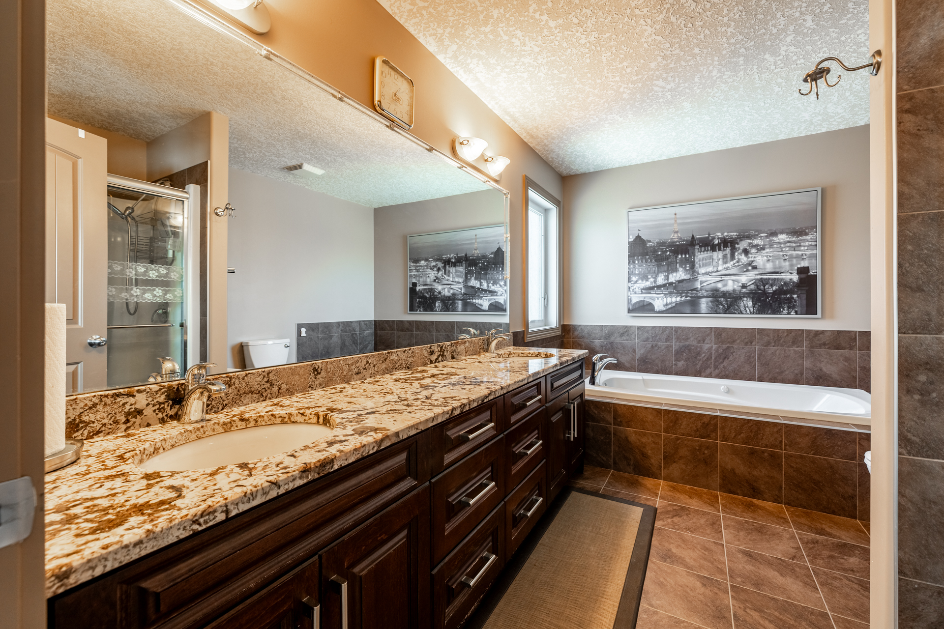 That means three separate bathroom spaces serving the upper level alone — something rarely found in Sherwood homes.